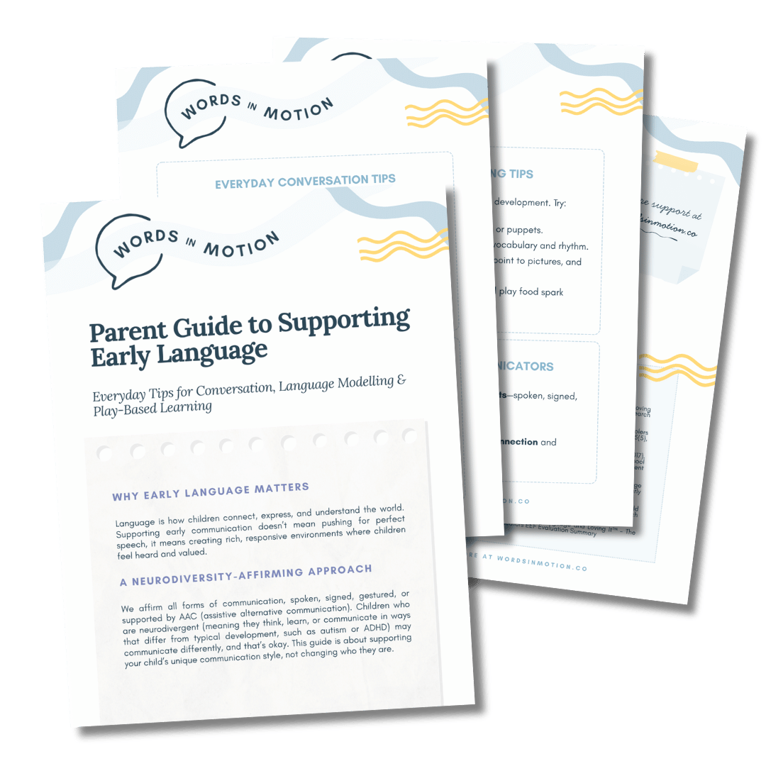 At Words In Motion, we know that helping children succeed means working together — with parents, teachers, and students all playing an important role. That’s why we offer a range of educational services designed to equip families, schools, and learners with the tools, strategies, and confidence they need to support communication, literacy, and learning.